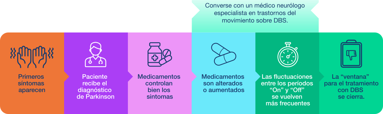 Este momento puede variar de un paciente a otro, ya que el curso y la progresión de la enfermedad de Parkinson son individuales. Habla con tu médico en las fases iniciales del tratamiento y manifiesta el deseo de explorar alternativas, como la Estimulación Cerebral Profunda, a medida que avances en tu camino.³